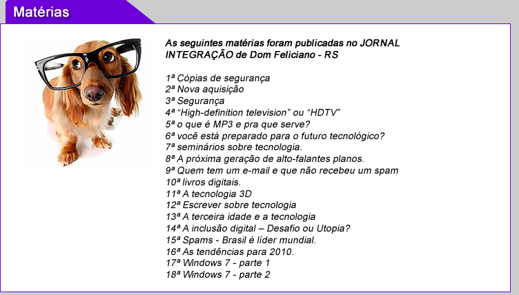 Vou nas poucas linhas que me são cedidas, transmitir dicas, falar sobre lançamentos e novidades na área da informação.
